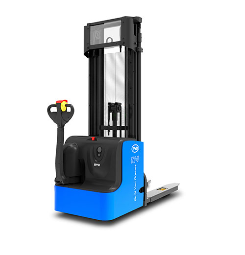承載能力為1.0~1.6噸,作業(yè)通道寬度一般為2.3~2.8米,在結(jié)構(gòu)上比電動托盤搬運叉車多了門架,貨叉提升高度一般在4.8米內(nèi),主要用于倉庫內(nèi)的貨物堆垛及裝卸。